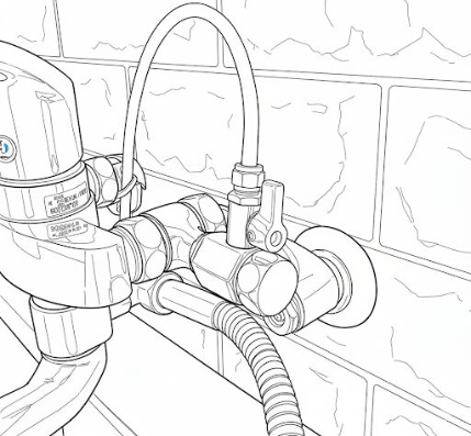 -分岐バルブ側の止水弁が閉じていることを確認します。