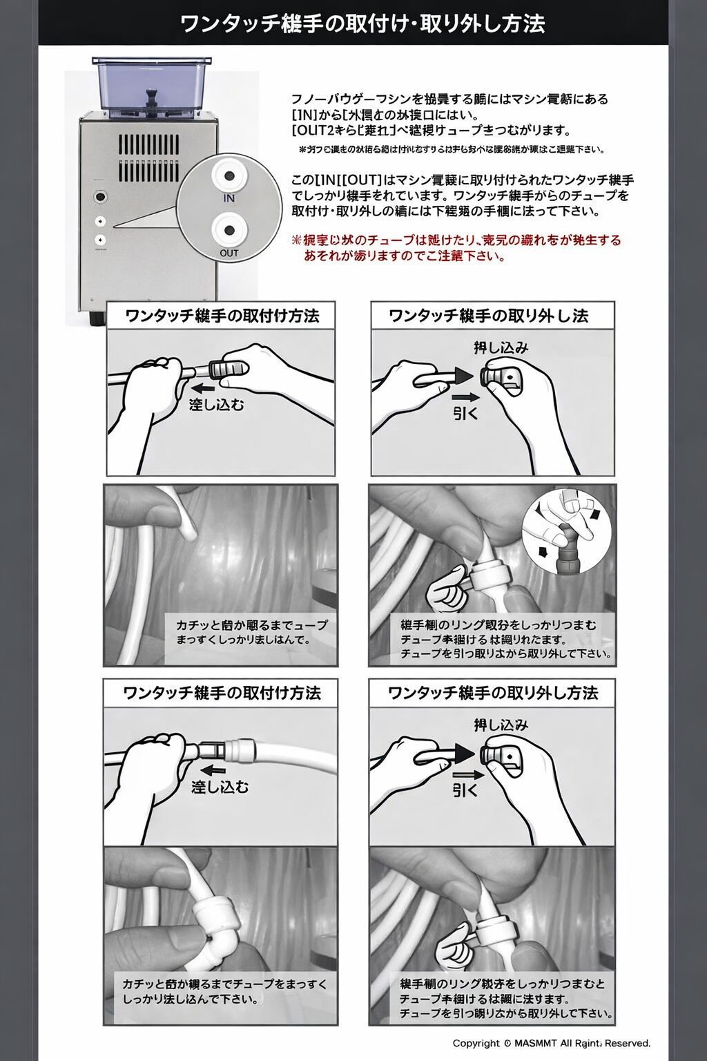・スノーパウダーマシンへの給排水をつなぐための専用ホースです。